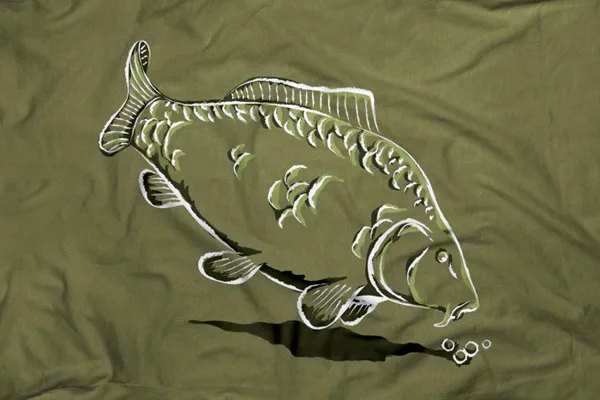Tričko v zelené barvě s vyobrazením kapra je nevšední kousek do vašeho šatníku.