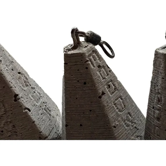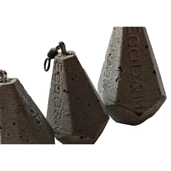 Certifikované ekologické betonové zátěže aerodynamického tvaru a obratlíkem univerzální velikosti, vhodné pro sportovní a rekreační rybolov.