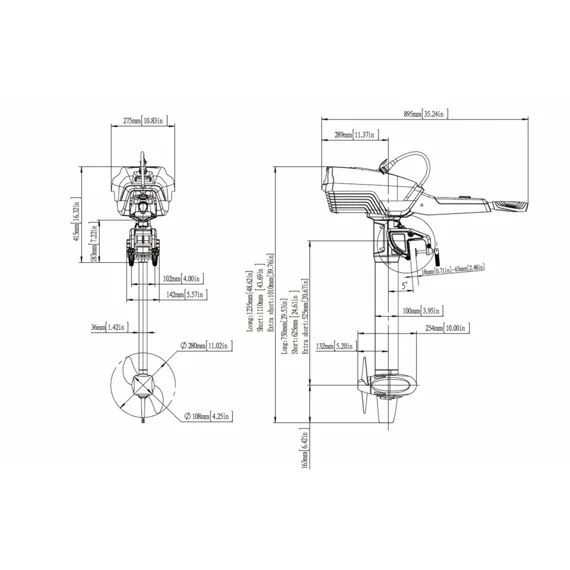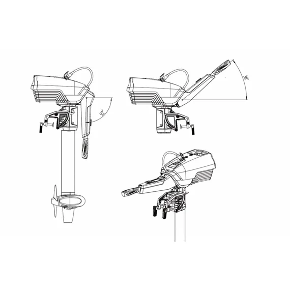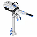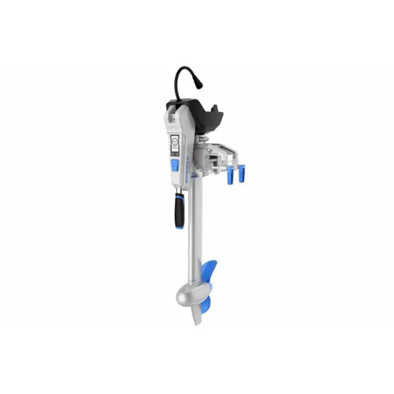 Elektromotor s extra krátkou nohou a ručním řízením, vhodný pro lehké motorové čluny nebo plachetnice do výtlaku 1,5 tuny.