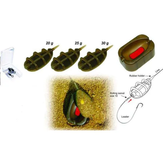 Set obsahuje průběžné tří plastová krmítka vhodná pro lov na feeder nebo na lehkou kaprařinu a jednu formičku.