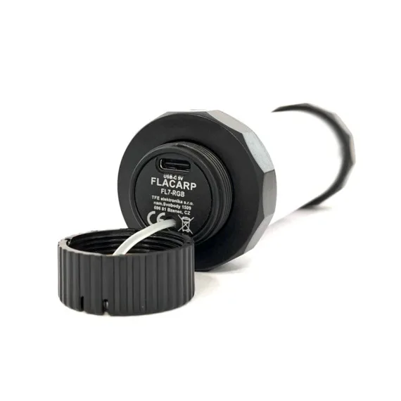 Vodotěsné, RGB světlo s příposlechem, které disponuje USB-C konektorem.