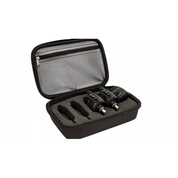 Sada dvou signalizátorů Q9-RGB TX, příposlechu RX Multi a kufříku pro bezpečné uložení sady.