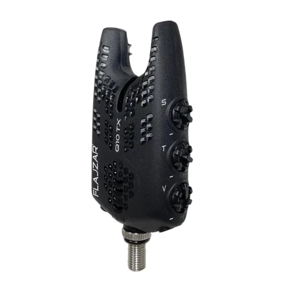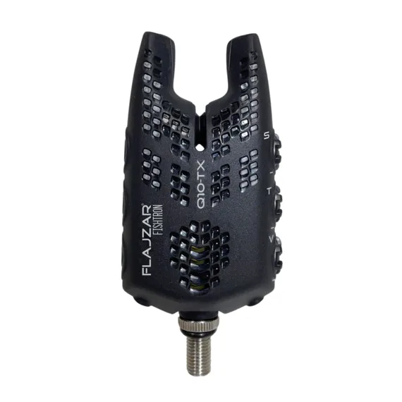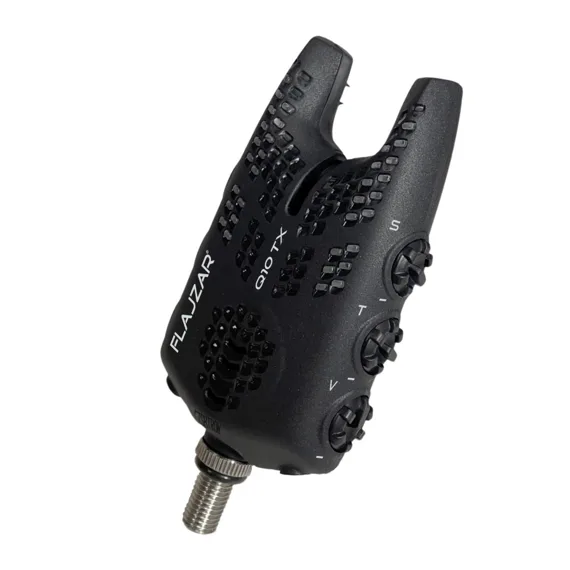 Tento český signalizátor Q10 TX je nabitý novými funkcemi. Jedná o funkce CONNECT (kontrola dosahu s přijímačem RX MAX), funkce alarmu proti krádeži prutů nebo funkce automatického zvýšení citlivosti. Potěší také další konektor pro swinger – nyní tak máte možnost si zapojit nejenom svítící swinger, ale i např. svítící uši. Vylepšením je také napájení dvěmi AAA bateriemi, což znamená, že výměna baterií je nyní snazší a efektivnější.