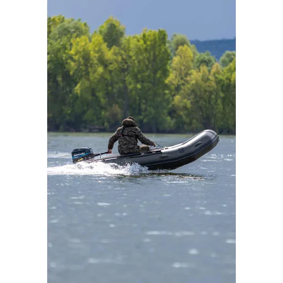 Člun má délku 320 cm, šířku 172 cm a nosnost 438 kg, což jej řadí mezi nejvýkonnější modely ve své třídě. Průměr válců 41 cm nabízí vysokou stabilitu, zatímco 0,9 mm silný materiál zajišťuje maximální odolnost. Kompatibilita s motorem až 15 hp umožňuje rychlý přesun po vodní ploše. Hmotnost člunu činí 35,4 kg, nafukovací podlaha váží 12 kg a celý komplet je připravený pro náročné vícedenní rybářské expedice.