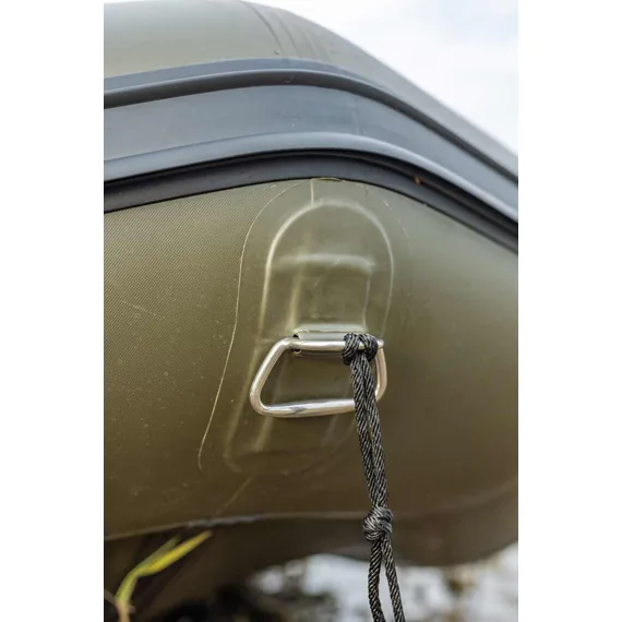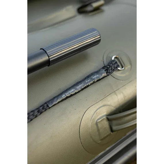 Kýl ve tvaru „V“ a komory o průměru 41 cm poskytují mimořádnou stabilitu, což oceníte při přepravě vybavení, zavážení i zdolávání z lodi. Tříkomorový systém doplněný bezpečnostním přetlakovým ventilem garantuje vysokou úroveň bezpečí i v náročnějších podmínkách. Zesílená spodní strana chrání člun před odřením a nárazy, zatímco lana po stranách a dobře rozmístěné rukojeti zajišťují pohodlnou manipulaci na souši i na vodě.