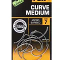 Model Curve Medium Barbless je dostupný ve velikosti 8 (8B), která je ideální pro řadu moderních kaprařských montáží. Ostrá rovná špička podporuje rychlou penetraci, zatímco agresivní ramínko zvyšuje jistotu záseku v různých podmínkách. Produkt je dodáván v balení po 10 kusech, což poskytuje dostatečnou zásobu pro více výprav i testování různých prezentací. Uvedený obrázek je ilustrativní.