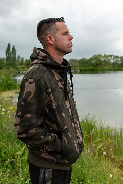 Mikina je kompletně podšitá měkkým a hřejivým mikroflísem, který zvyšuje tepelný komfort při nízkých teplotách a vytváří příjemné prostředí při celodenním nošení. Dvě prostorné kapsy na zip poskytují bezpečné uložení telefonu, klíčů nebo jiných nezbytností, což zvyšuje praktičnost při pohybu venku. Fox Camo Full Zip Premium 310 Hoodie tak nabízí ideální spojení komfortu, tepla a praktických detailů.