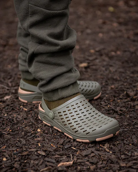 Pantofle Fox Khaki Clogs představují ideální volbu pro rybáře hledající maximální komfort při pobytu u vody i v bivaku, kde je třeba rychle reagovat na záběr. Lehká konstrukce a snadné nazouvání umožňují okamžité použití, zatímco otevřený design podporuje přirozené větrání a pohodlný pohyb. Khaki provedení navíc doplňuje celkový outdoorový styl a snadno ladí s ostatní výbavou.