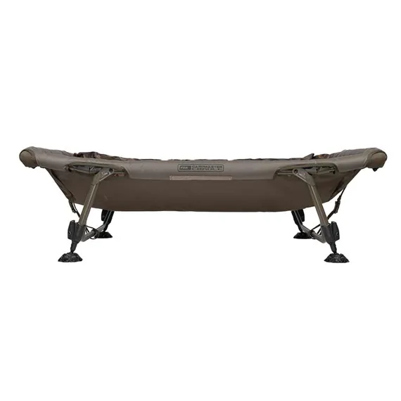 Podložka je vybavena čtyřmi výškově nastavitelnými nohami s kloubovými bahenními patkami, které zajišťují pevnou stabilitu na jakémkoli povrchu. Polstrovaný obvodový rám chrání rybu během pohybu v podložce, zatímco zavěšená nosná plocha zabraňuje kontaktu s rámem. Tato kombinace konstrukčních prvků zaručuje maximální bezpečí i pro velké kapry, kteří potřebují stabilní a měkké prostředí.