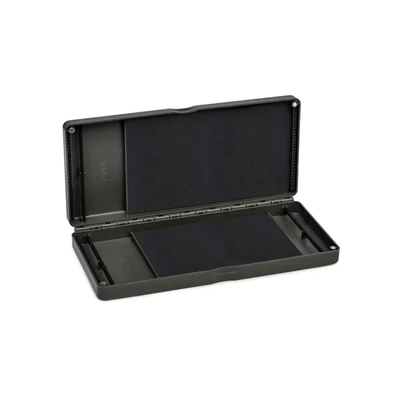 Fox Edges Rig Box Medium je ideální volbou pro rybáře, kteří potřebují přehledné a bezpečné uložení velkého množství hotových návazců. Oboustranná konstrukce umožňuje efektivně využít vnitřní prostor, díky čemuž pouzdro pojme až 132 návazců a 84 montáží. Pevné provedení chrání uložené vybavení před poškozením během přepravy a zachovává vše dokonale uspořádané a připravené k okamžitému použití.