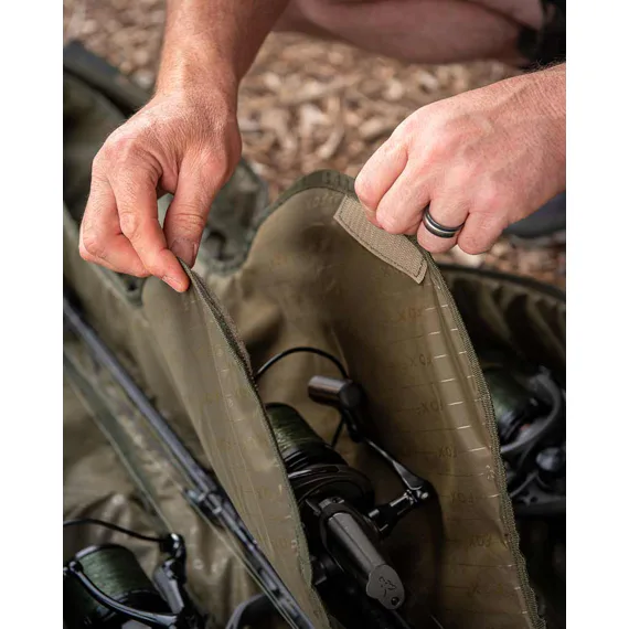 Pouzdro má rozměry 192 × 25 × 28 cm, které poskytují dostatek prostoru pro dlouhé pruty s navijáky i příslušenstvím. Konstrukce je tvořena odolným polyesterem s hustotou 500 Denier, výplní z polyetylenu a pevnou vnitřní podšívkou pro dlouhodobou životnost. Dvoucestné 10mm zipy zajišťují hladký chod a bezpečné uzavření. Unikátní Fox Camo vzor dotváří celkový vzhled a sjednocuje pouzdro s ostatní výbavou řady Camolite.