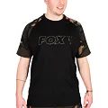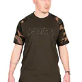 Tričko s krátkým rukávem v černé barvě a maskáčovými rukávy.