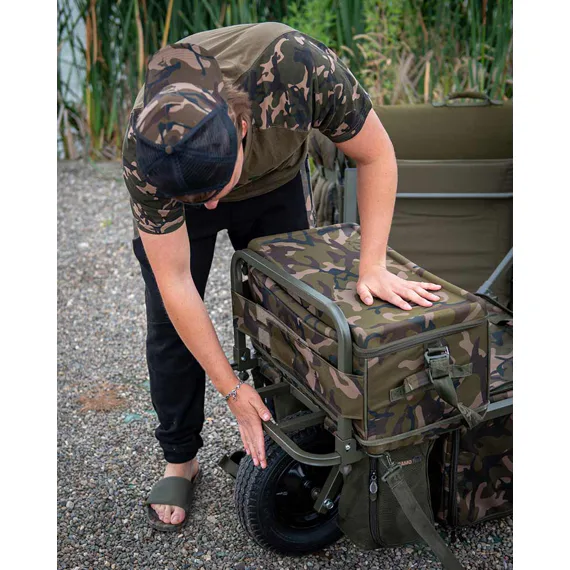 Fox Explorer Barrow MK2 je praktický vozík navržený pro krátké i dlouhé cesty k vodě, kde zajišťuje pohodlný transport veškerého vybavení bez nutnosti kompromisů. Díky promyšlenému rámu umožňuje umístit tašky, lehátko i další výbavu tak, aby byl vozík perfektně vyvážený. Konstrukce podporuje stabilitu při různém zatížení a nabízí maximální praktičnost pro rybáře, kteří chtějí mít vše přehledně uspořádané.