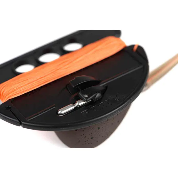 Součástí zátěže je 10 metrů dlouhý provázek ve výrazné oranžové barvě, který umožňuje pohodlné vytažení olova z vody po skončení lovu nebo po odpadnutí při záběru. Držák šňůry je vybaven otvory pro snadné upevnění pod signalizátor nebo na záchytné uši, což zajišťuje organizované uložení bez zamotávání. Tento systém poskytuje rybáři plnou kontrolu nad manipulací, i když loví v těžko přístupných místech.