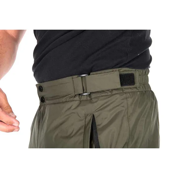 Kalhoty jsou vybaveny elastickým pasem s nastavitelnými popruhy, které umožňují přesné přizpůsobení postavě, zatímco zesílené kolenní panely zvyšují pohodlí při častém klečení u vody. Nastavitelné manžety u bundy i nohavic zajišťují lepší izolaci a brání pronikání chladu, přičemž nohavice s rozparkem usnadňují oblékání přes vyšší zimní boty. Dvojitá vnější légra u zipu výrazně omezuje průnik větru a vlhkosti.