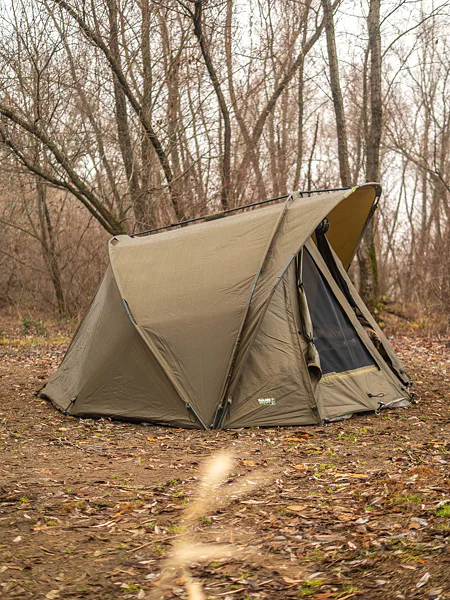 Komfortní a propracovaný bivak pro dvě osoby, vyrobený z voděodolného materiálu a s podlepenými švy.