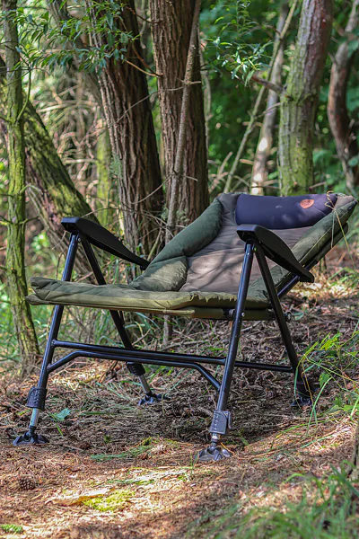 Luxusní rybářské křeslo nabízí maximální pohodlí, stabilitu a možnost individuálního nastavení pro dlouhé hodiny pohodového sezení u vody.
