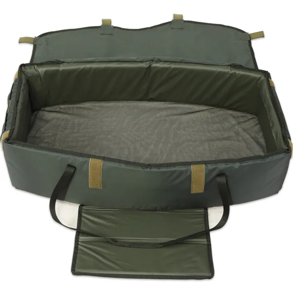 Součástí je vyjímatelná plovoucí podložka umístěná uvnitř, která poskytuje vynikající ochranu ryby a zvyšuje bezpečnost při manipulaci. Podložka disponuje také odklopným vrchním krytem, dnem ze síťoviny pro rychlý odvod vody, praktickou boční podložkou na kleknutí a kapsami po stranách například na peán nebo desinfekci, což výrazně zvyšuje komfort používání u vody.