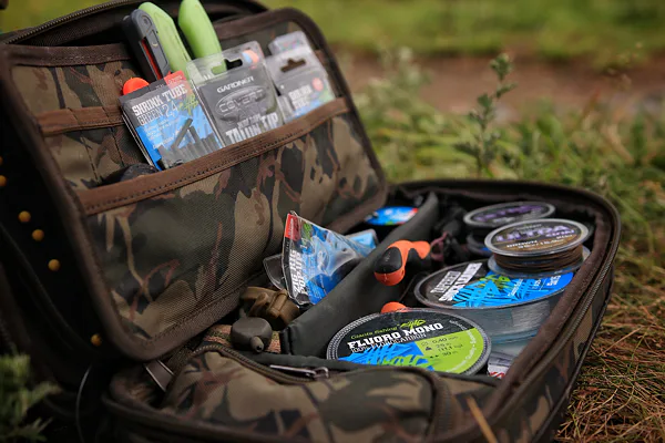 Rozsáhlý kaprařský organizér zajišťuje dokonalý přehled, ochranu a rychlý přístup ke kompletní výbavě, což výrazně usnadňuje přípravu montáží a komfort při každé rybářské výpravě.