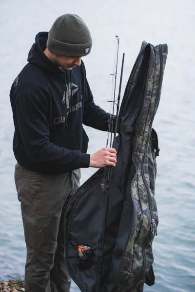 Vnitřní prostor pouzdra je řešen tak, aby pojal pruty včetně velkokapacitních navijáků, což výrazně usnadňuje přípravu i samotný transport k vodě. Plné polstrování po celé délce obalu zajišťuje maximální ochranu prutů během přepravy i skladování a minimalizuje riziko poškození citlivých částí výbavy při manipulaci nebo převozu v automobilu.