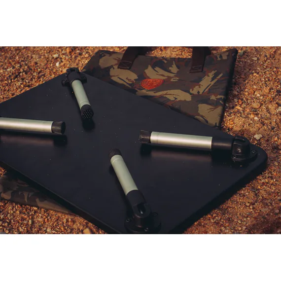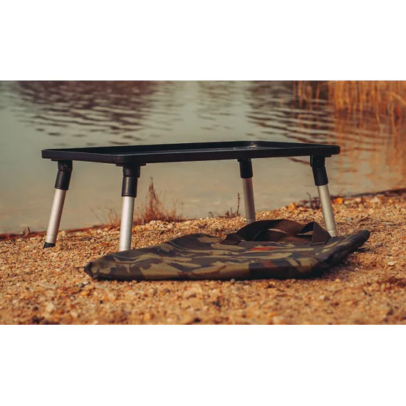 Stolek do přístřešku hliníkové konstrukce černé barvy, který je dodáván včetně nepromokavého obalu v atraktivním maskáčovém designu.