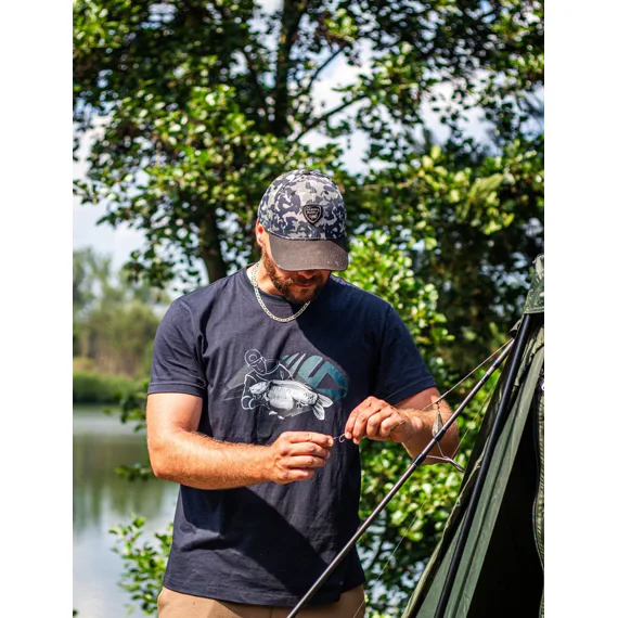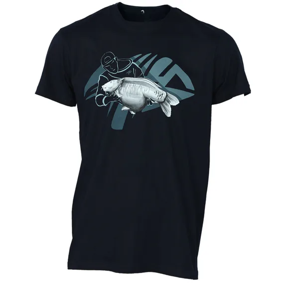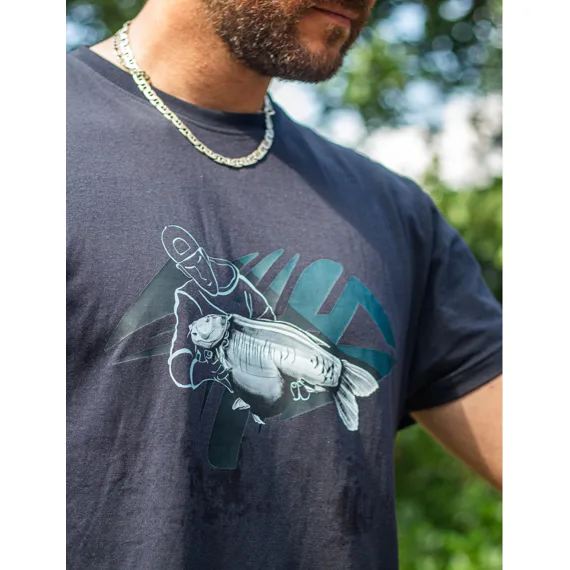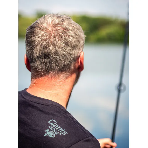 Pánské tričko Giants Fishing v tmavě modré barvě s originálním designem rybáře a jeho úlovku je ideální volbou pro všechny milovníky rybaření.