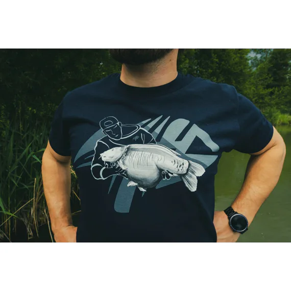 Giants fishing Tričko pánské modré - rybář s kaprem