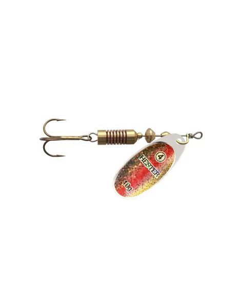 Zvyšte úspěšnost přívlače s rotační třpytkou Hester Fishing Rainbow Trout, která díky pevnému drátu, kvalitnímu tělíčku a háčkům VMC nabízí spolehlivý chod, odolnost a jistý zásek.
