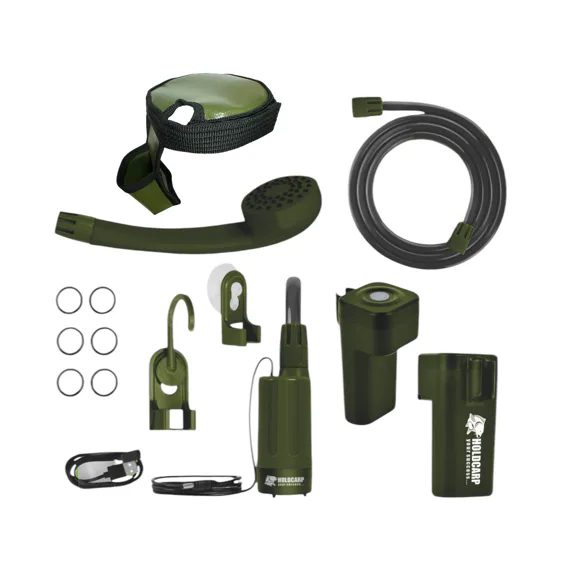 Součástí setu je hadice o délce 1,8 m, sprchová hlavice, nabíjecí kabel a další praktické příslušenství. Kanystr má tmavě zeleno-černé provedení a je kompatibilní s ostatními Holdcarp Cubic Water Carrier modely.