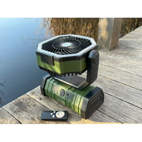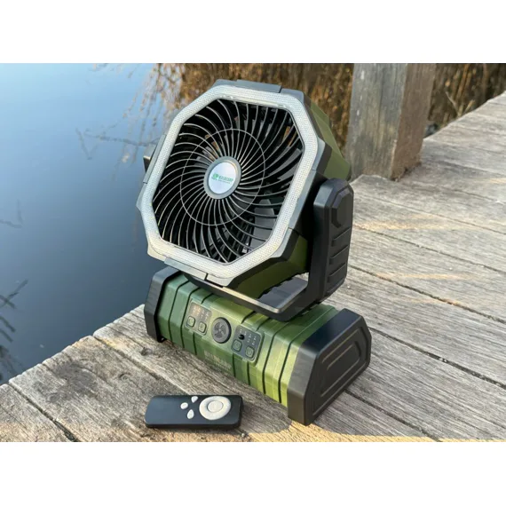 Výkonný ventilátor s vestavěným nabíjecím akumulátorem o kapacitě 20 000 mAh, který lze využívat i jako Powerbanku.
