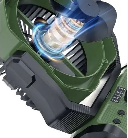 Ventilátor je vybaven vestavěným akumulátorem o kapacitě 20 000 mAh, který zajišťuje dlouhou výdrž a zároveň umožňuje využití zařízení jako powerbanky pro dobíjení telefonu, čelovky nebo další elektroniky. Technologie dvou samostatných motorů zaručuje tichý, plynulý a rovnoměrný chod, zatímco vodní pára nabízí dva režimy rozprašování pro individuální nastavení intenzity osvěžení.