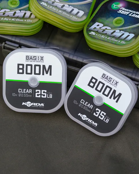 Ačkoliv patří do cenově příznivé řady Basix, materiál nabízí vysokou kvalitu, odolnost a spolehlivost, kterou rybáři od značky Korda očekávají. Díky balení o délce 10 metrů poskytuje dostatečné množství pro přípravu velkého počtu montáží. Basix Boom je tak skvělou volbou pro rybáře, kteří chtějí profesionální vlastnosti fluorokarbonu za velmi dostupnou cenu.