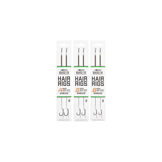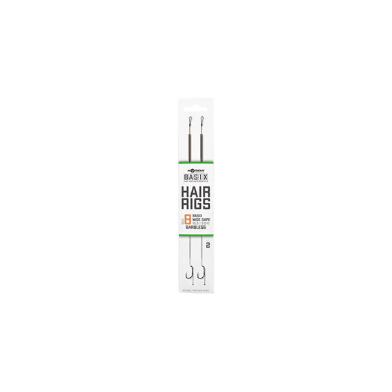 Každý návazec je dodáván s několika zarážkami Hair Stops a různě velkými zarážkami Extenda, které vám umožní měnit délku vlasce a používat jiné velikosti návnad než ty, pro které je návazec určen. Na druhém konci Basix Hair Rigs je smyčka a návlek proti zamotání Basix, který umožňuje rychlé a snadné připevnění k sestavě Basix Lead Clip Leader nebo Basix Lead Clip Action Pack.