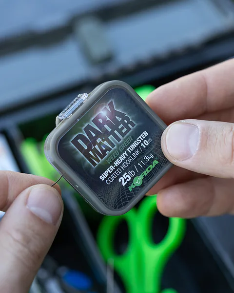 Návazcová šňůrka Korda Dark Matter Tungsten Coated Braid Green 10m je navržena jako polotuhý, wolframem zatížený materiál, který zajišťuje rychlé potápění, stabilní prezentaci a maximální nenápadnost. Je ideální pro rybáře lovící v obtížných lokalitách, kde je vyžadována vysoká odolnost a absolutní spolehlivost montáže.