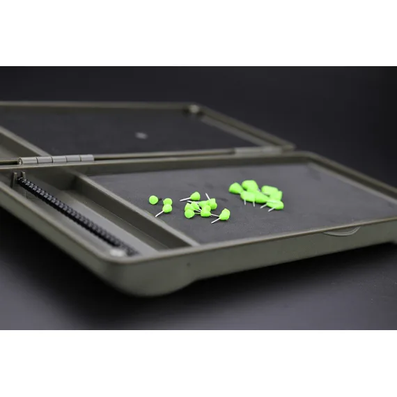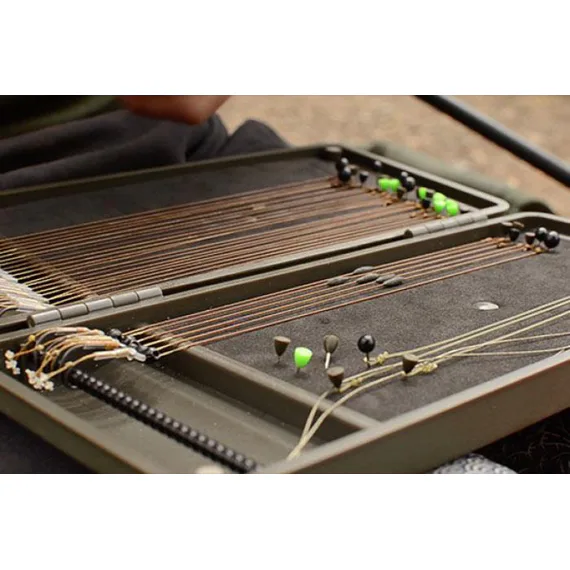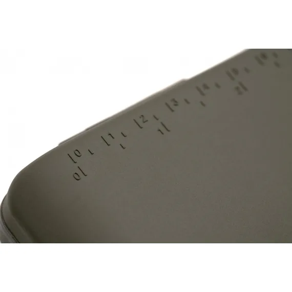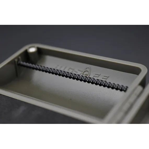Kompaktní plastová konstrukce je potažena jemným gumovým povrchem a vybavena magnetickým zavíráním, které zaručí bezpečný transport bez samovolného otevření. Na vnější straně je navíc integrované pravítko pro snadné měření a úpravu délky návazců.