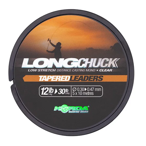 Long Chuck Tapered Leader je ujímaný vlasec, který byl speciálně vyvinutý pro extrémní nahazování. Dokonalosti a nejdelšího hodu dosáhnete pokud ho použijete s kmenovým vlascem Long Chuck, nebo s vlascem, který nejvíce odpovídá průměru slabší strany ujímaného vlasce.