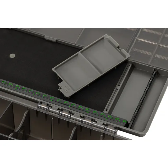 - box obsahuje malou, odnímatelnou přihrádku pro dočasné umístění např. obratlíků, háčků, korálků atp. na snadno přístupném místě – ideální umístění je místo hrazdy pro upevnění háčků návazců
