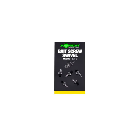 Balení obsahuje 5 kusů Bait Screw Swivel, takže máte dostatečnou zásobu pro běžné použití i rychlou výměnu během lovu. V nabídce najdete dvě velikosti – medium a large – což vám umožní vybrat správný typ podle velikosti a typu používané nástrahy. Tento šroubek je skvělým pomocníkem pro všechny, kdo chtějí montáž zefektivnit a zrychlit její přípravu bez kompromisů v prezentaci.