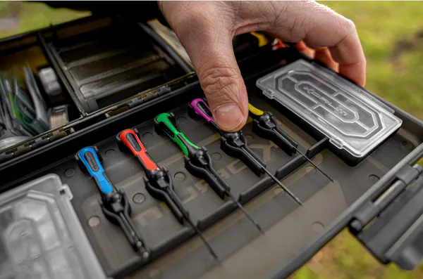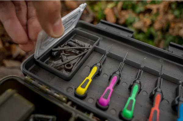 Velkou výhodou je víko s integrovanými držáky pro jehly a vrtáček, do kterých se nástroje přesně zacvaknou a zůstávají bezpečně na svém místě i při přepravě. Součástí balení je sada pěti praktických nástrahových nástrojů Ti Baiting Tools, takže box obsahuje 4 jehly a vrtáček a je připravený pro bezproblémovou práci s nástrahami přímo u vody. Multifunkční provedení je tak ideální pro rybaře, kteří chtějí mít nejen bižuterii, ale i nástroje v jednom pevném a přehledném systému.