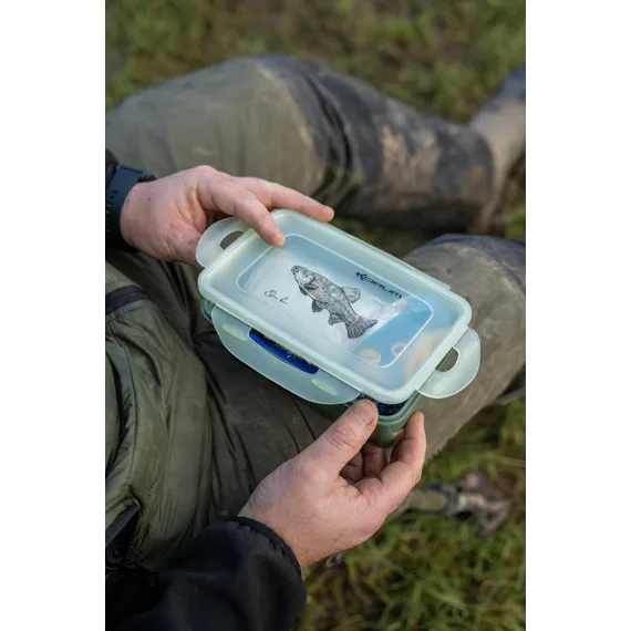 Uzavíratelná nádoba s pevným víkem poskytuje dostatek prostoru pro sendviče, sladkosti nebo chipsy. Krabička je ozdobena nádherným motivem lína od renomovaného rybářského umělce Steva Phillipse a potěší nejen milovníky tradičního feederu či plavané, ale i sběratele rybářského umění.