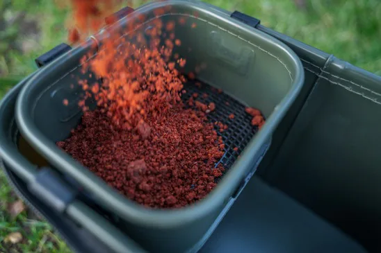 Uvnitř se nacházejí dvě vyjímatelné misky, které Vám usnadní třídění nástrah i přípravu krmení během lovu. Jedna z misek je opatřena 3 mm síťkou, díky které můžete prosívat živé nástrahy nebo krmivo a získat tak čistší a praktičtější materiál pro nastražení i zakrmování. Tento systém zrychluje práci a zvyšuje komfort při častém používání u vody.
