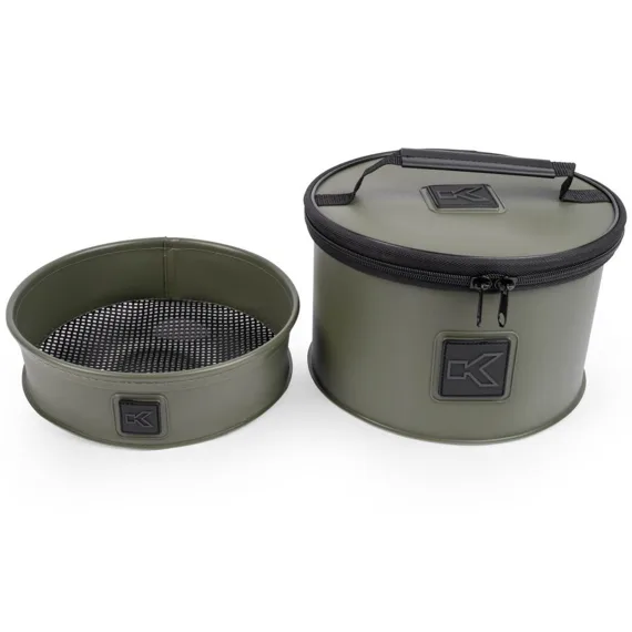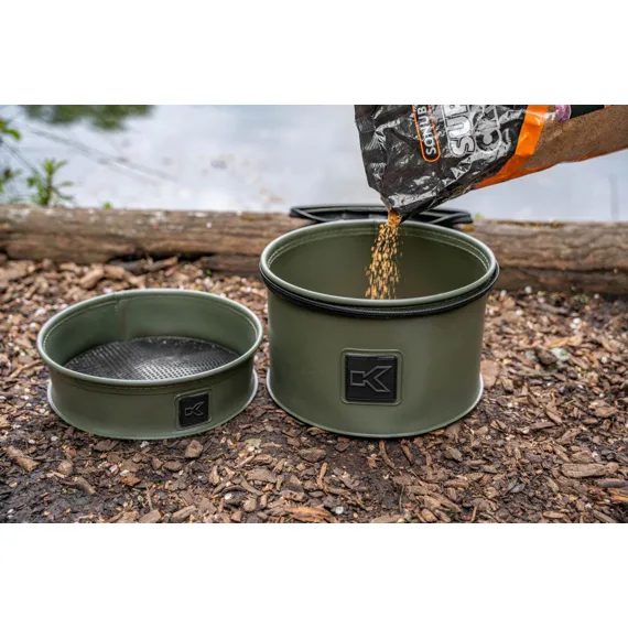 Korum EVA Riddle Set 3mm je praktická miska s vložkou určená pro přípravu a prosívání krmení či živých nástrah.