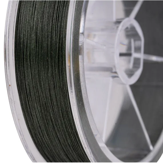 Konstrukce z vláken 8+1 PE a PTFE poskytuje nulovou průtažnost, extrémní pevnost a výjimečný kontakt s montáží. Díky vyšší hustotě než voda klesá rychle ke dnu a umožňuje přímý kontakt i na větší vzdálenosti. Tmavě zelená camo barva zajišťuje dobrou viditelnost nad vodou a přitom splynutí pod hladinou.