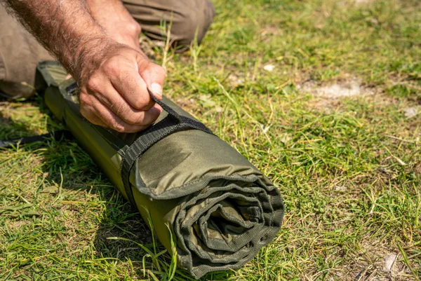 Praktickou výhodou jsou integrovaná d-očka, díky kterým lze podložku během transportu připevnit ke kompatibilnímu zavazadlu Korum, a tím zjednodušit přenášení celé výbavy. Toto řešení oceníte hlavně při přesunech mezi lovnými místy, kdy chcete mít ruce volné a podložku bezpečně zajištěnou, aniž by se Vám v tašce nebo batohu zbytečně pohnula nebo znečistila.