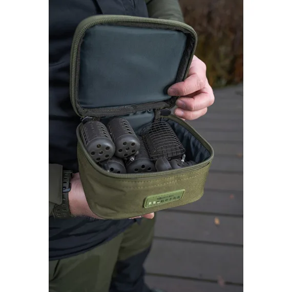 Kompaktní pouzdro s polstrovanou konstrukcí, které je ideální pro uložení drobného rybářského příslušenství.