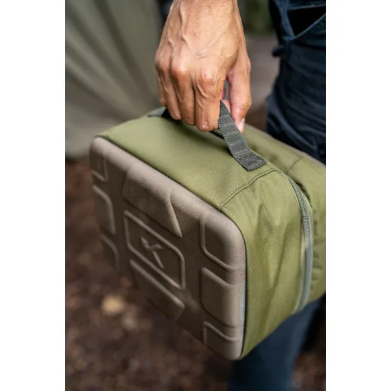 Víko a základna jsou vyrobeny z pevného EVA materiálu, což zajišťuje odolnost a dlouhou životnost. Pouzdro je navíc rozměrově přizpůsobeno systému Tackle Blox, takže do něj snadno uložíte i krabičky a další komponenty této řady.