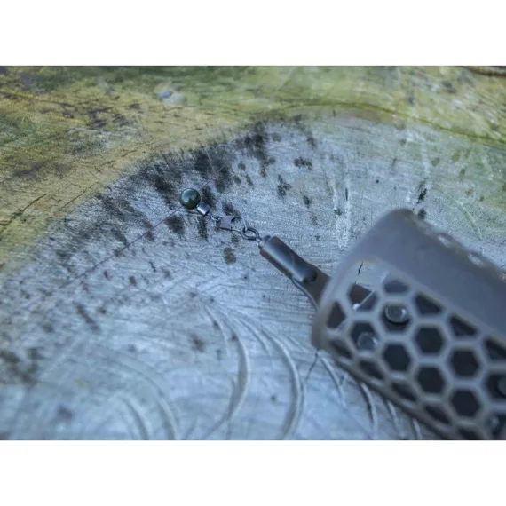 Kvalitní karabina zajišťuje maximálně snadnou a rychlou výměnu krmítka či olova. Gumová kulička na obratlíku navíc chrání uzlík před poškozením.