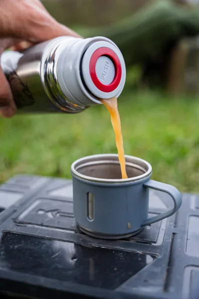 Termoska se snadno ovládá pomocí push-button uzávěru, takže ji můžete pohodlně používat i jednou rukou, což je velká výhoda při manipulaci u vody. Součástí víčka je kompaktní hrnek, díky kterému máte vše připravené bez nutnosti nosit další nádobí, a celý systém je tak praktický pro každodenní rybářské použití. Tento detail zvyšuje komfort při pití a zároveň dává termosce funkční výbavu, která šetří místo i čas při každé výpravě.