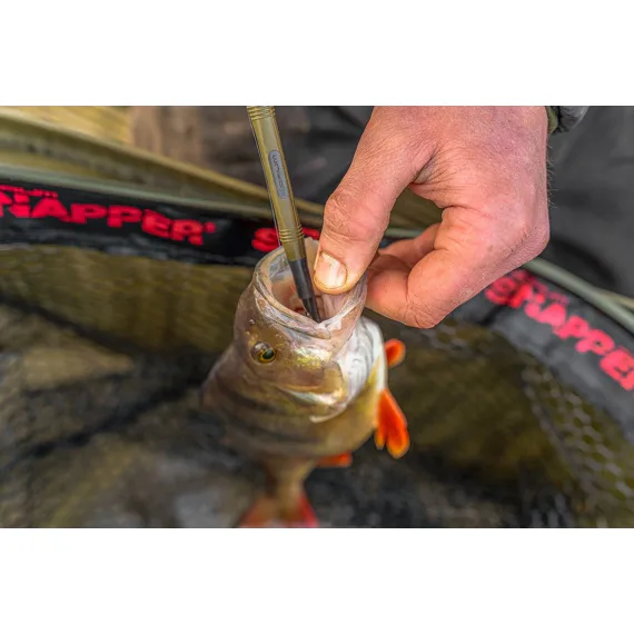 Na jednom konci najdete klasický tvar vyprošťovacího nástroje, zatímco druhý konec je vybaven moderním kovovým očkem pro snadné vyháknutí větších ryb. Ergonomický pogumovaný povrch zajišťuje pohodlné a jisté držení i za mokra.