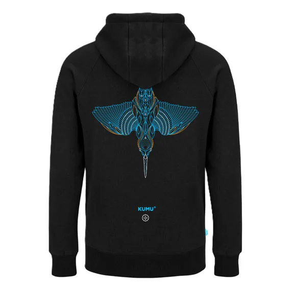KUMU Mikina Take Flight je grafickou poctou ikonickému ledňáčkovi. Motiv využívá ilustraci ve stylu klíčové linie, která znázorňuje rychlý pohyb, a elektricky modré a měděné tóny na mikině doslova vystupují do prostoru a vytvářejí téměř 3D efekt.